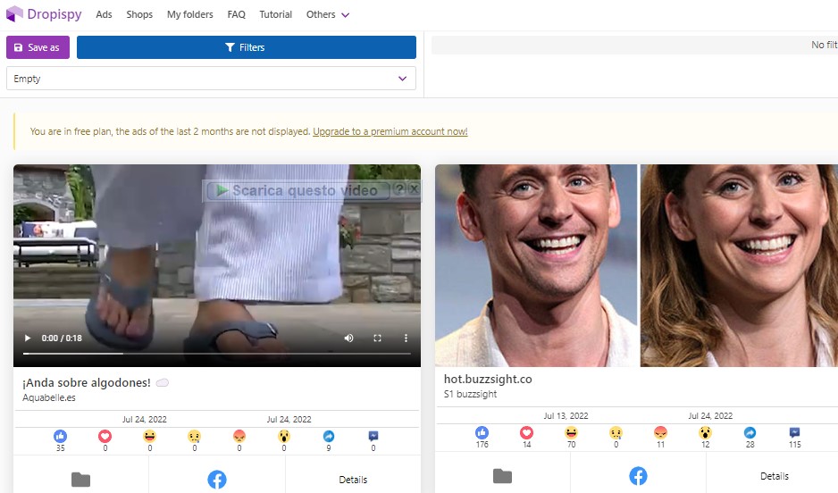 Similmente ad AdSpy, anche Dropispy offre uno dei più grandi database di annunci, rendendolo uno dei principali operatori del mercato.